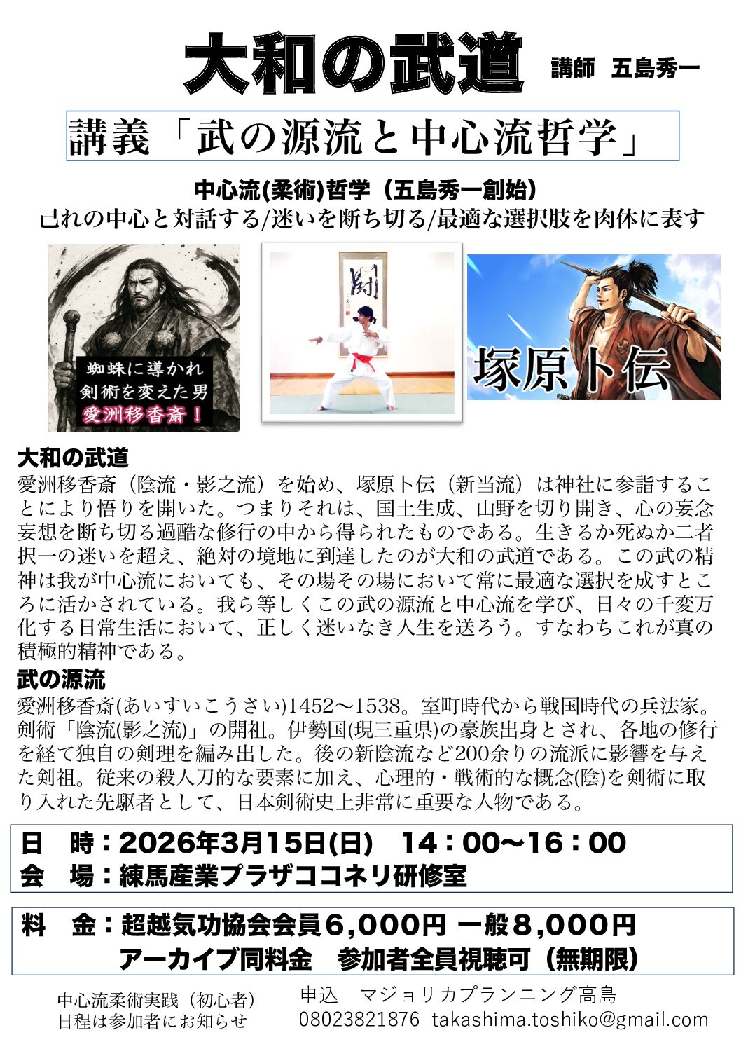 EventSeminar 【大和の武道】武の源流と中心流哲学(講義)〈五島秀一〉