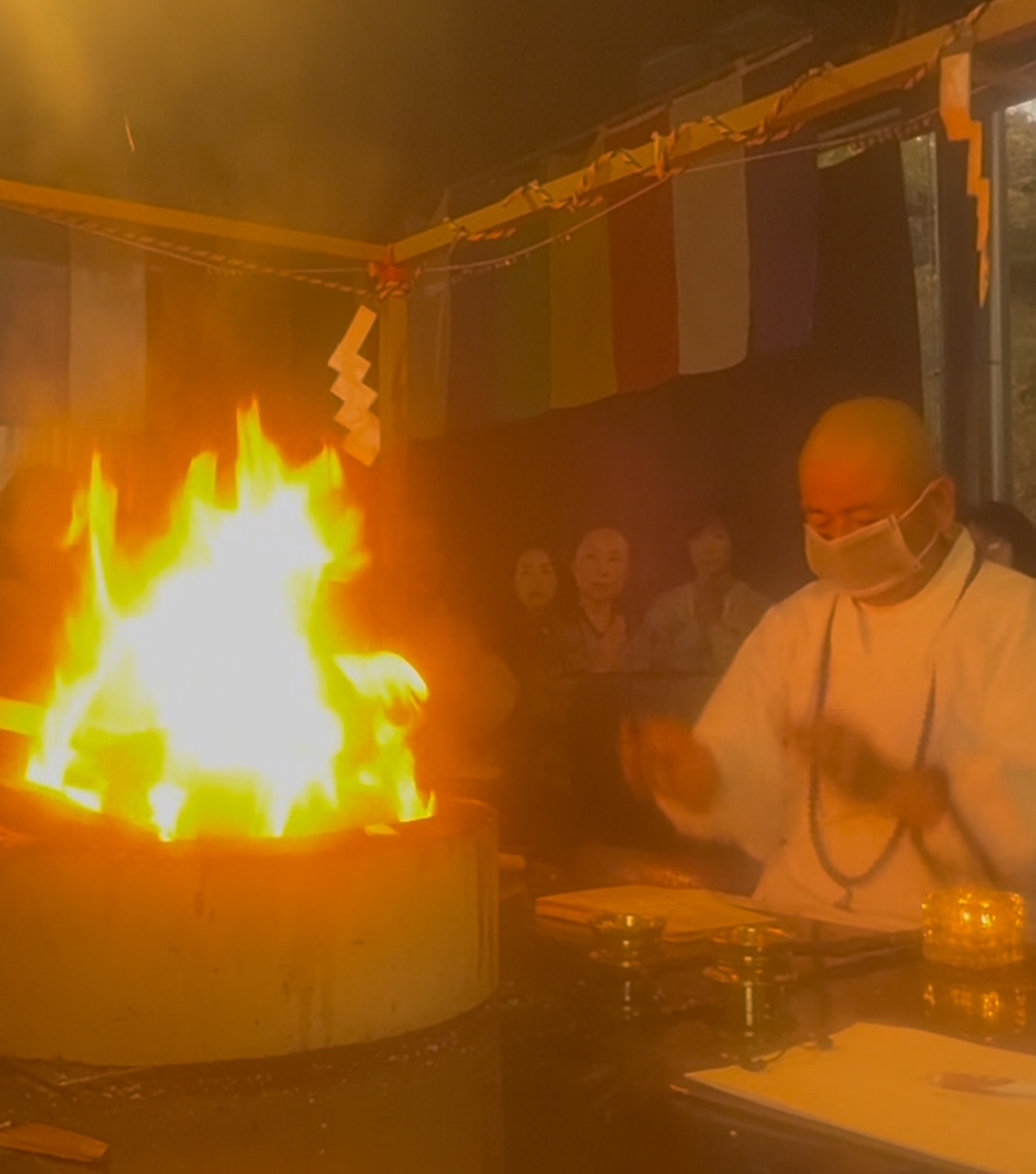 さて、5年ぶりの再会にて、宗鳳和尚には「2026年神様社長・普賢菩薩」の護摩祈願をご依頼させていただきました。力強く厳かで神秘の炎が燃え上がる宗鳳和尚の護摩祈祷と、奥様の知里さんの真言と太鼓のリズムは、私たちを異なる次元の世界へ誘導します。さらに祈祷の際に知里さんが受け取る弘法大師のメッセージが自動書記となり、祈願をされた方に手渡されます。今回受け取ったメッセージは、宗鳳和尚曰く「非常に高貴で難解なメッセージである」と。翌日Dr.Shuが解読することに。こちらは参加者の方へお知らせさせていただきます。